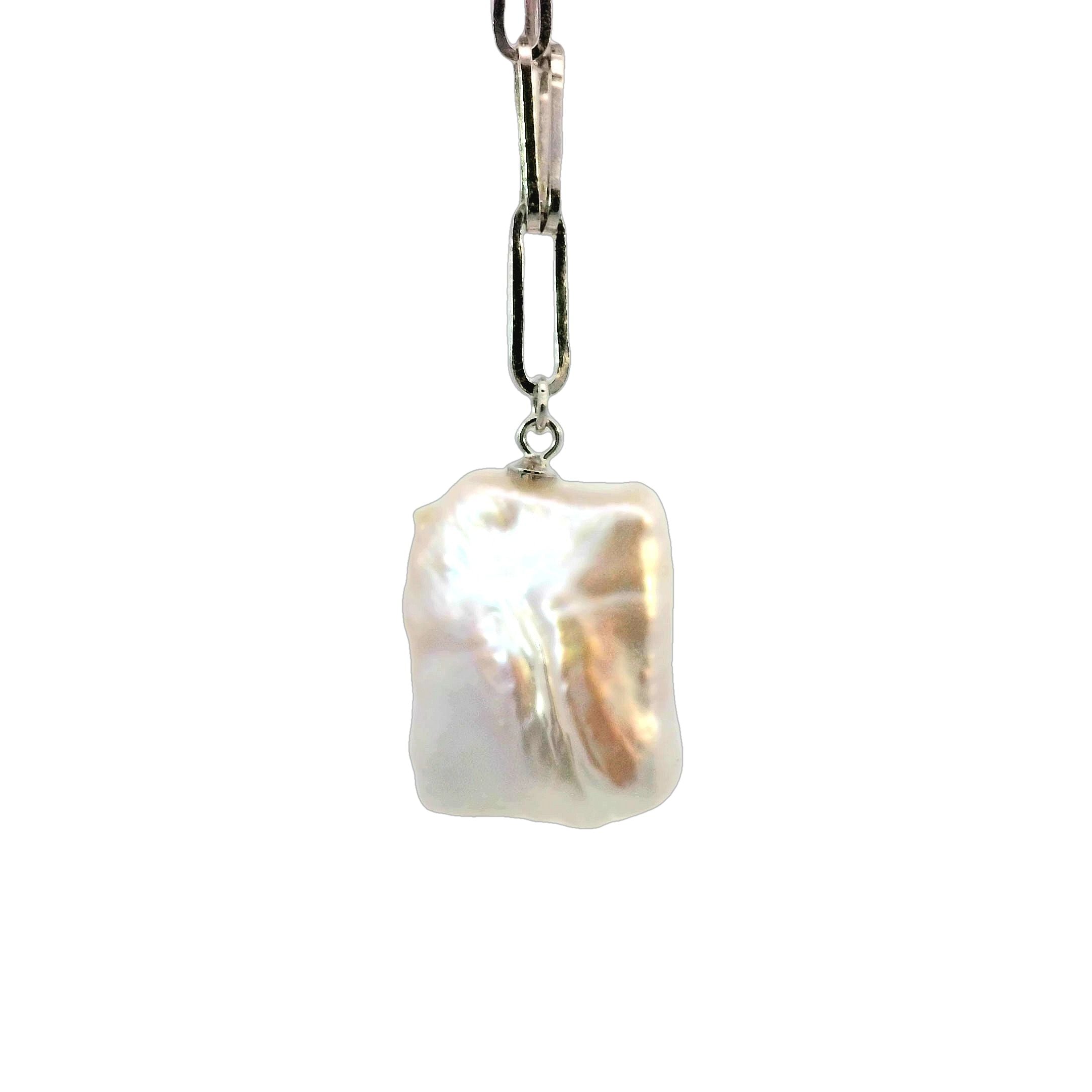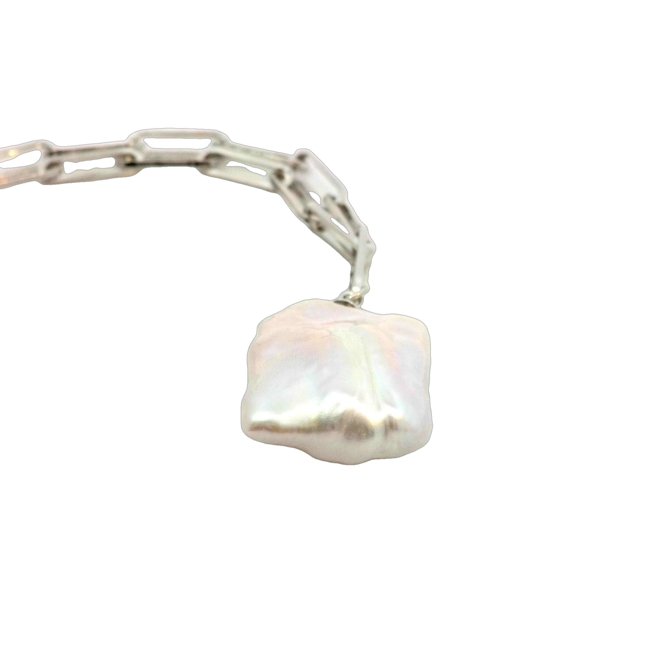 Stainless Silver Paperclip Chain with Fresh Water Pearls