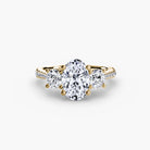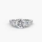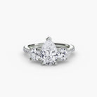 This elegant three-stone ring symbolizes your past, present, and future, elevated with a pavé band for extra sparkle and detail. A perfect union of meaning and brilliance.