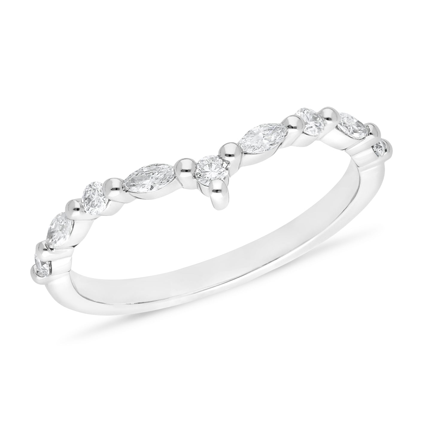 18CT WHITE GOLD MARQUISE AND ROUND DIAMOND POINTED SHAPED BAND