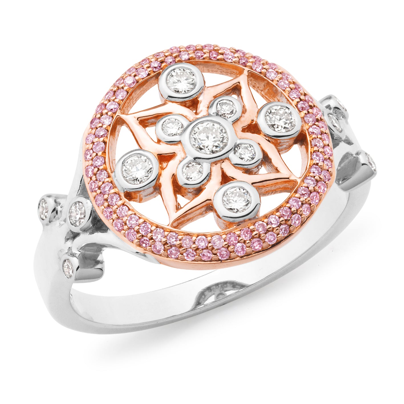 9CT ROSE AND WHITE GOLD RING WITH PINK AND WHITE DIAMONDS TDW=0.46CT