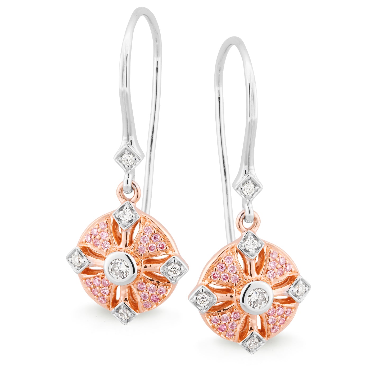 WHITE AND ROSE GOLD PINK AND WHITE DIAMOND EARRINGS